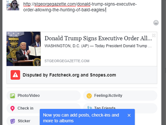 Facebook came under fire when a headline from the St. George Gazette blared last month saying, “President Donald Trump signs an executive order allowing the hunting of bald eagles.” The headline was proven to be fake, yet it got wide coverage on Facebook. The platform was also allegedly involved in allowing their networks and advertising programs to distribute and amplify fake news stories during the run-up to U.S. presidential election in 2018.