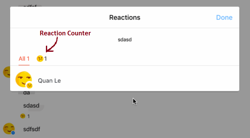 An emoji counter will appear below every message in a chat. You can tap a specific message in the thread to see a full list of who left which Reaction.