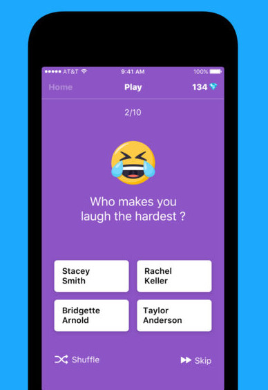 The app presents prewritten compliments like “Who makes you laugh hardest?” with four of your phone contacts (who have already downloaded the app) as possible answers. The answers are randomly selected and if a person is selected with one of your choices he/she will get notification alert.