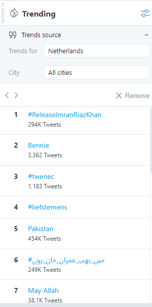 Whereas, the sources confirmed that the trending hashtags based in Netherlands were related to Pakistani matters. Below, the screengrab shows footages including “ReleaseImranRiazKhan”, Pakistan, “I_Am_Also_Imran_Khan” and “May_Allah”.