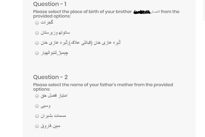 The family tree questions can be answered by any sibling, uncle, aunt nephew etc who might also know your CNIC number.