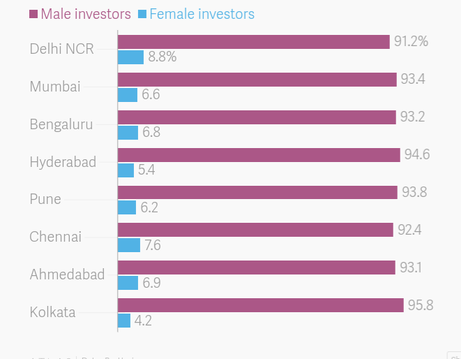 According to the research, Indian women are being classified as more of spenders than investors. Men are noted to invest more in Bitcoin than women. A recent study by Quartz India shows that the majority of cryptocurrency investors in India are men. District wise distribution of the data was recorded as,