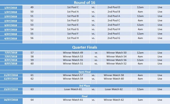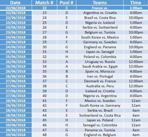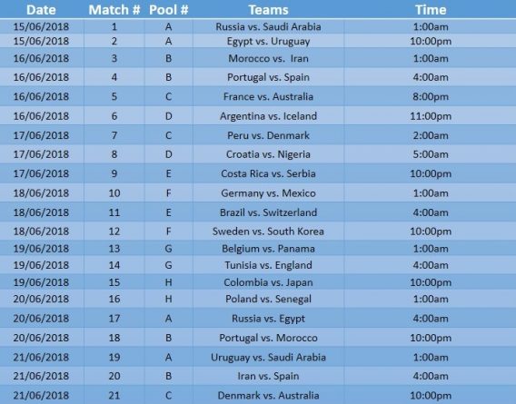 SCHEDULE OF THE FIFA WORLD CUP 2018