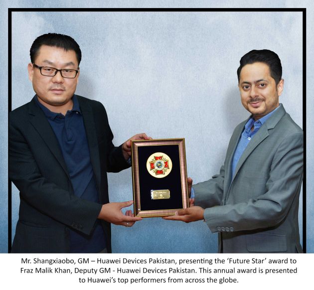 Fraz Khan Malik, Deputy General Manager of Huawei has received the ‘Future Star’ Award – an award given to employees of Huawei from across the globe due to their exceptional job performance.