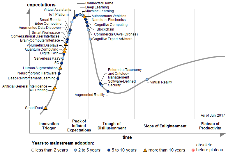 Gartner, a leading technology research and analysis company, has released a new report that highlights the megatrends that help digital businesses thrive in the next decade. The report titled “The Hype Cycle for Emerging Technologies 2017” details the top nascent technologies, and using deep learning, it points out which tech will gather traction in the coming years. All information in the report was compiled after Gartner’s review of over 2000 companies that it tracks and analyzes. To help people visualize things, the report comes with an interesting graph that includes up-and-coming or relatively new technologies and maps them according to the time it will take for them to become mainstream.