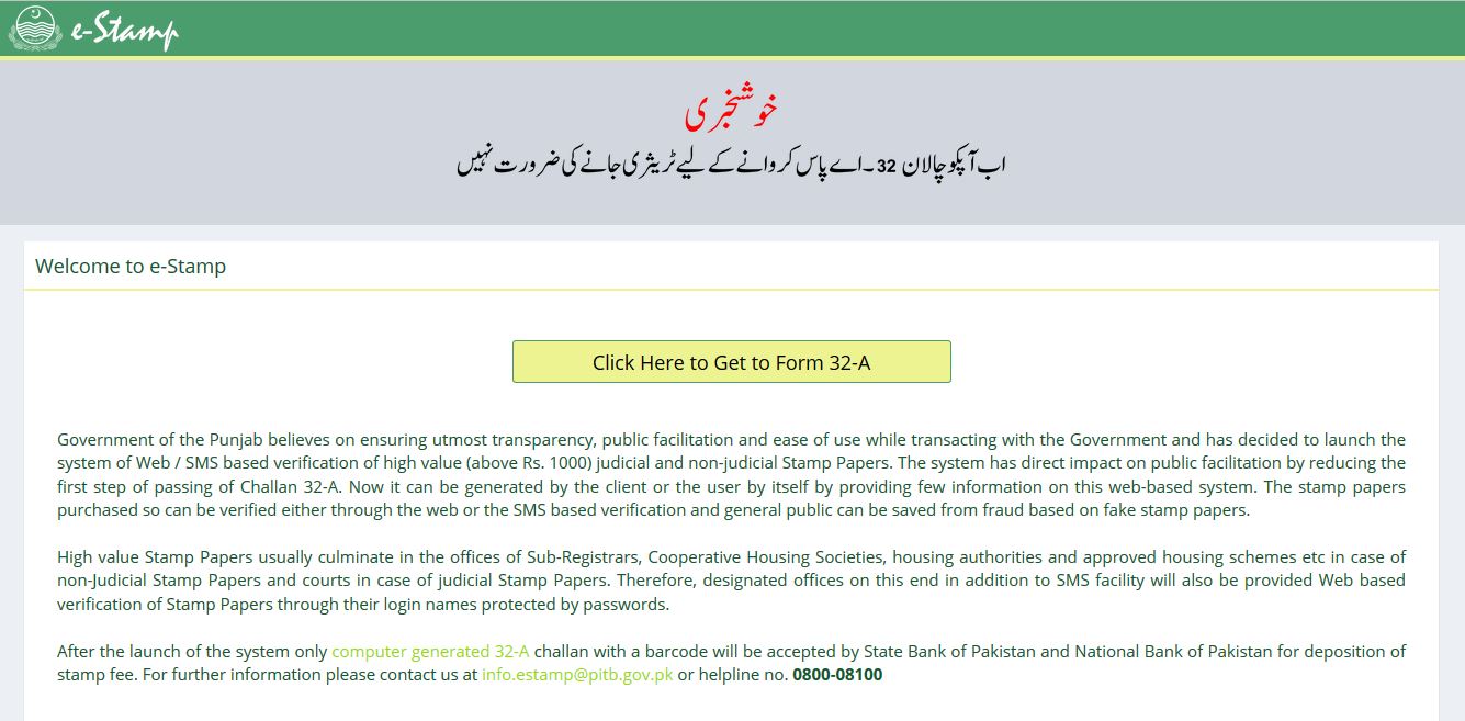 People desirous of obtaining stamp papers will no longer have to wait, and stand in queues, in front of the government treasury office. Now, they will only need to generate the challan Form 32-A from the website after putting in the required information. The challan will be payable at designated BoP branches across the districts. After payment of stamp fee, the citizen will be issued e-stamp paper from BoP. The e-stamp paper then can be verified by the concerned parties using the website, or by using the SMS service.