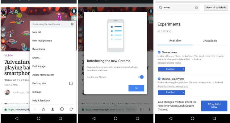 Chrome 63 has redesigned flag pages which were earlier quite similar to the desktop version. It has included a prominent search feature, larger touch targets, and tabs to separate available/unavailable options.