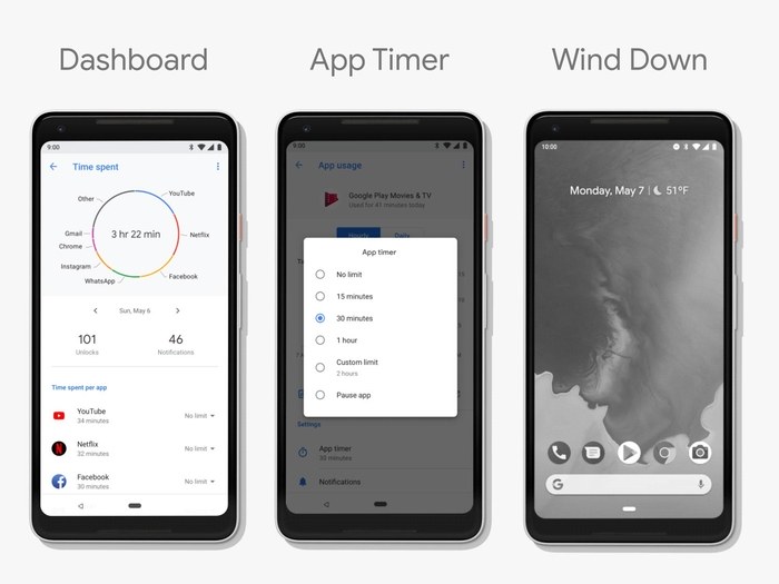 A special focus has also been put on making the users more aware of their smartphone usages. A special dashboard has been added which provides important information about how used your smartphone over a specific time frame, what applications did you use and for how long.