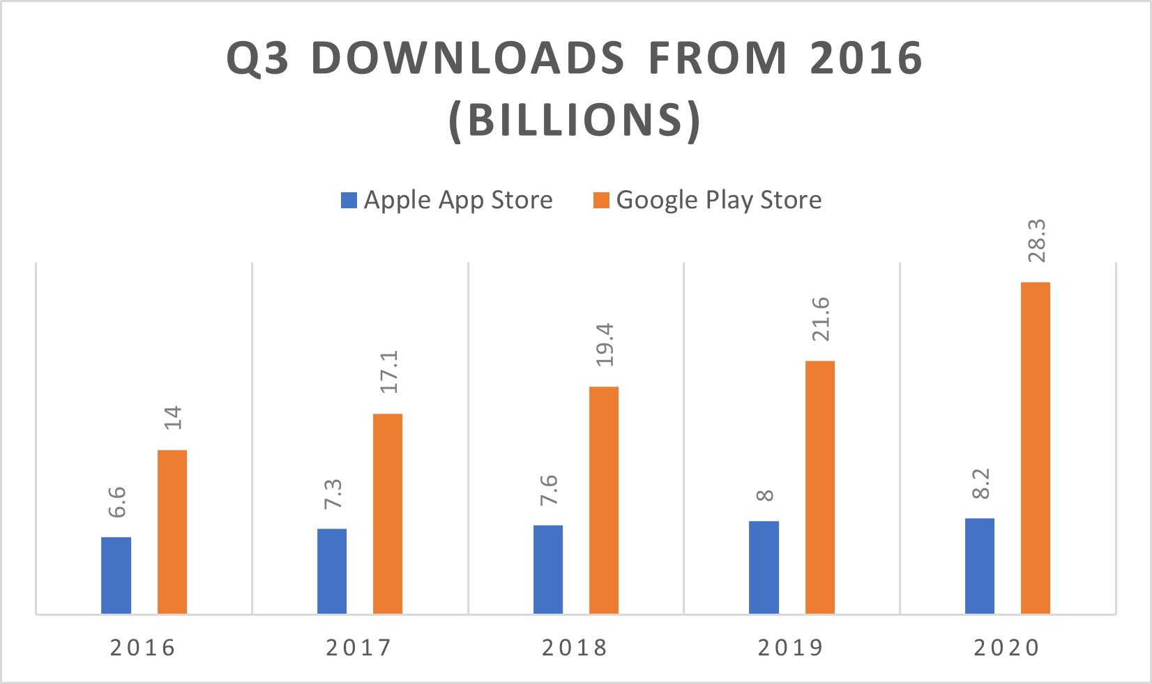 Google Play Store has triple the number of downloads as the Apple App Store for Q3 2020