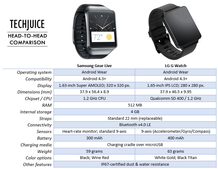 Android Wear, a modification of Android built and optimized for smartwatches, relies heavily on the very successful Google Now’s card-based interface to provide relevant, glanceable information to the user right when they need it. Well-known gestures like swipe to dismiss and long-press have been implemented to assist interaction with the interface. Also integrated within the Wear are voice commands and instant synchronization of notifications and actions with the smartphone/tablet. Users can search Google using voice queries, answer/reject phone calls, send instant text replies, fiddle with music controls, set alarms and reminders, and more, right from the watch’s touchscreen display. Customizable watchfaces, water resistant body and fitness tracking sensors are also available for select variants.