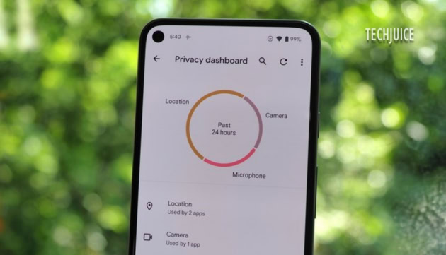 The three-dot menu located at the top of the Privacy dashboard should enable users to toggle between the 24-hour and 7-day views when they are accessible. The pie chart view remains unchanged, and a more comprehensive timeline of the permissions can be accessed by tapping on either the Location, Camera, or Microphone.