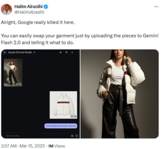 One user praised the model’s ability to swap garments by simply uploading an image of the desired clothing item and giving a text command: “Alright, Google really killed it here. You can easily swap your garment just by uploading the pieces to Gemini Flash 2.0 and telling it what to do.”