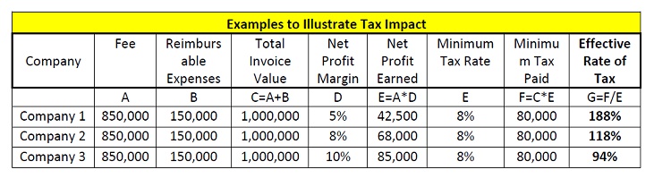Minimum Tax Rate: A company has to pay 8% tax regardless of the amount of profit earned or loss made by the company
