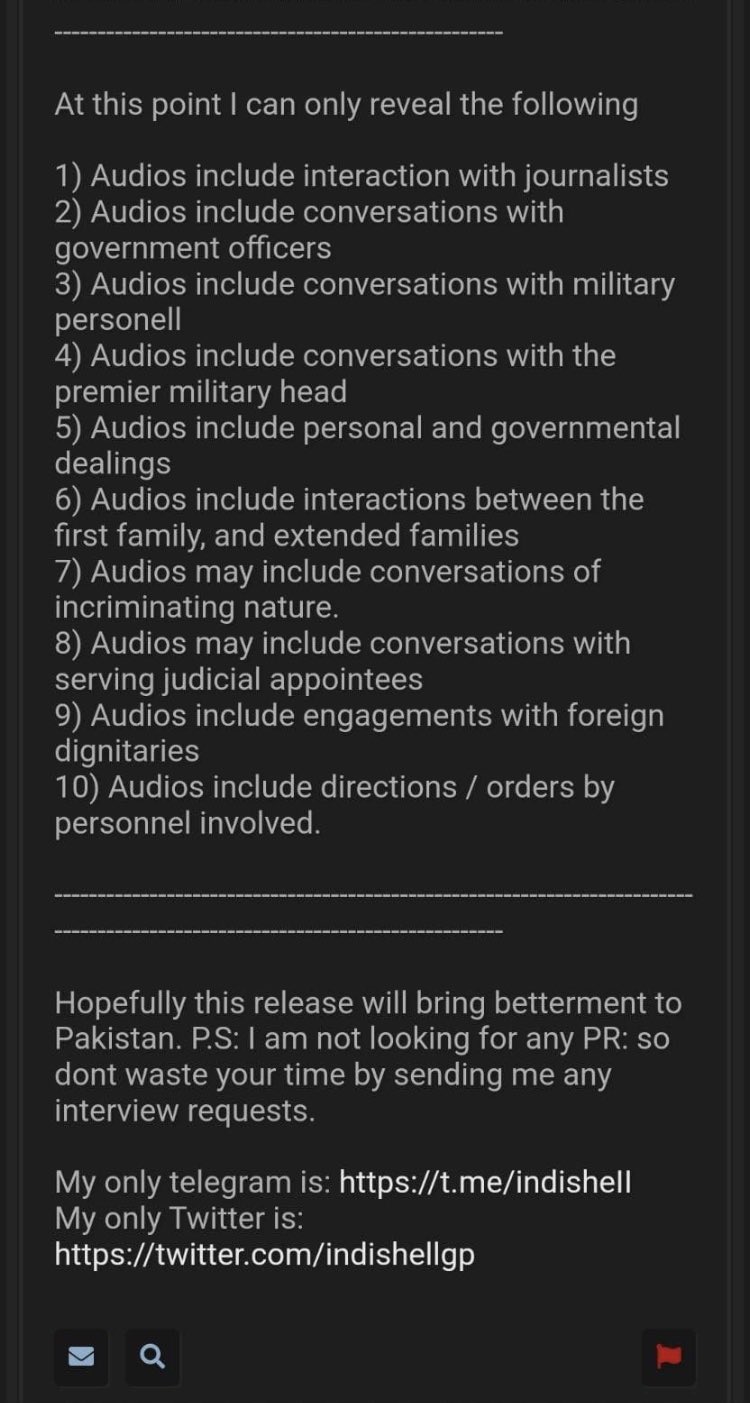 The seller at the end of his message said that they hope these leaked audio files will bring betterment to the future of Pakistan, they further added that he seeks no PR from these audio leaks and will not be up for any interview request.
