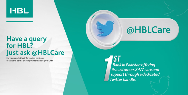 HBL is the only bank in Pakistan with two Twitter handles. The existing handle @HBLPak, which has more than 131,000 followers, will now be used for news and information.