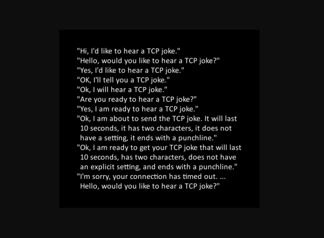 Hello, would you like to hear a TCP joke? from ProgrammerHumor