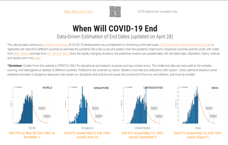 Of course, it should go without saying that these are just predictions. They are only as good as the data on which they are based, and their may be cases where the data is not accurate enough to correctly estimate what direction the epidemic takes in the future. Therefore, the website comes with a disclaimer explaining that the findings being displayed are for educational and research purposes only and must be taken with a pinch of salt. Predicting the future of a worldwide pandemic such as the coronavirus is a very difficult task, so the margin of error is quite high. Therefore, readers should continue the necessary precautions like social distancing until we are truly rid of this disease.