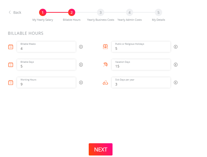 Step 2: Enter the billable hours, weeks, and days while accounting for the holidays.