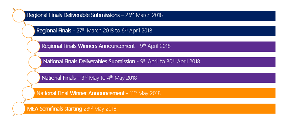 Deadline to apply for the regional finals is 26th March 2018, while the complete timeline can be viewed below: