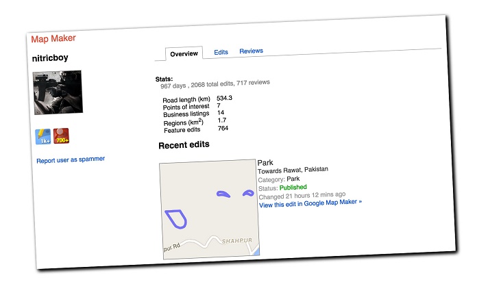 The answer to this question came from Michael Burgstahler who tweeted a profile link from the Google Map Maker Website. Here is the tweet.