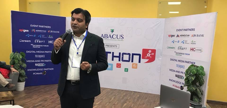 The first keynote speaker was Abbas Ali Khan, Managing Director, Abacus Consulting. He talked about how the idea of APIthon was conceived and why was it important to not reinvent the wheel while developing new applications. He encouraged all the participants to enjoy the next two days and come up with the most brilliant idea that they could. While talking about the digital economy, APIs and their correlation in today’s world, Abbas Ali Khan said: