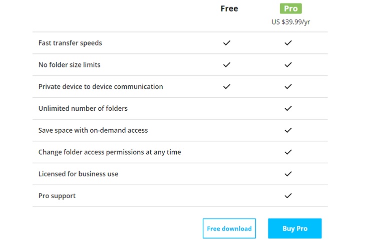 BitTorrent Sync gives you a whole lot of features for free, but there is an annual $39.99 subscription for the premium package with all the features. That price is still incredibly low compared to other cloud-storage options, but you probably won’t need to pay for it anyway as it is mostly aimed for business users. Pro Version comes with extra features such as Unlimited Folders, License for business use, changing folder permissions at any time, etc.