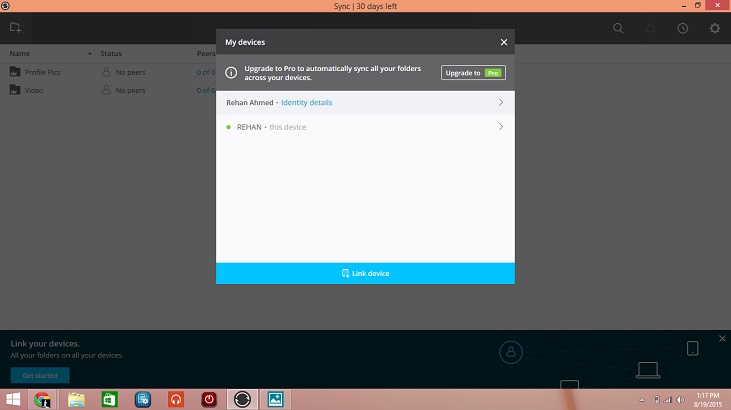 Note: The free version comes with a 30 day trial of BitTorrent Sync Pro.