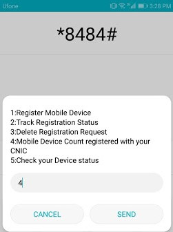 2: Choose the option ‘4’ if you want to know the number of devices registered on your CNIC.