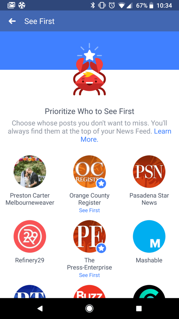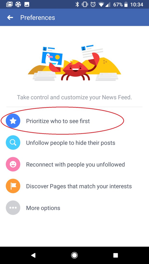 From your home screen view of Facebook mobile, click on the three horizontal lines on the top right side of the screen and get “News Feed Preferences”. A new page will open which will show up, click on “Prioritize who to see first.” You will see a list of Facebook pages and profiles that you already like. Scroll down and select the pages of your choice, the pages you will choose will get a blue star. Set them to your preferences and don’t forget to add TechJuice to your preferences. Click the images below in the gallery to get a better understanding.