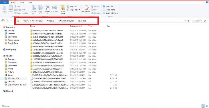 1. Go to “C:\Windows\SoftwareDistribution\Download” and delete all the files there. This will give Windows Update a clean slate.