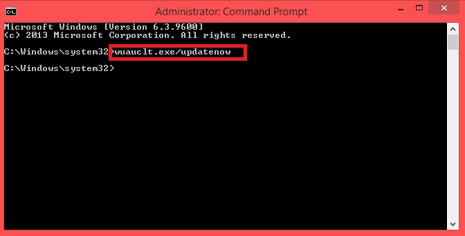 4. Type (but do not enter yet) “wuauclt.exe /updatenow” — this is the command to force Windows Update to check for updates.