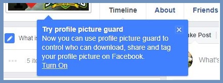 Facebook has announced this new feature called “profile picture guard” in a blog post for Pakistan. Meanwhile, many Facebook users including me are also receiving a popup notification right below their profile picture, when they open their Timeline. This notification also has a small icon at the end which gives an option to “Turn On” the feature.