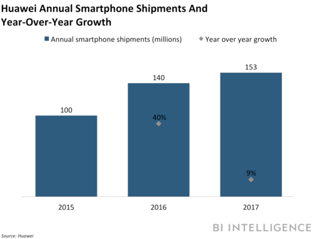 This is the slowest growth of Huawei since 2013. Revenue from Huawei’s Consumer Business group that includes smartphones and smartwatches is expected to increase 30% in 2017, decreasing from 44% in 2016 and 73% in 2015.