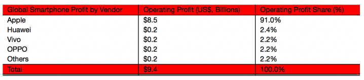 “An efficient supply chain, sleek products and effective marketing have been among the main drivers of Huawei’s robust profitability. Vivo and OPPO followed in third and fourth place and each took 2 percent global profit share. Vivo and OPPO delivered relatively healthy profitability due to disciplined pricing and soaring shipments across Asia.”
