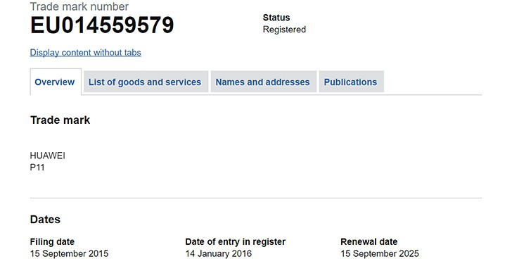 The new trademark leak also affirms the name of the product to be Huawei P11. The leak reveals that the entry of trademark for that name of the smartphone was filed back in 2015.