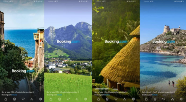 While other smartphones come with home screen photos of beautiful landscapes as default paper, Huawei users, however, are seeing images of different landscapes with a company logo on it. The image of an advert by “Booking.com” seems to have been added to the phone’s Magazine Unlock feature – a Huawei tool which displays a rotating set of images each time the device’s screen is activated and unlocked.