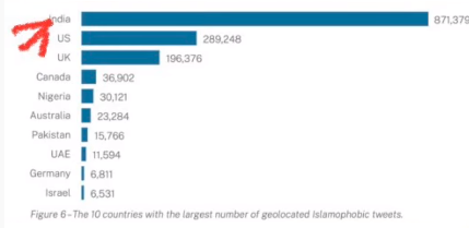 “We found that over 85% of all anti-Muslim posts originated in just three places: India, the US, and the UK.”