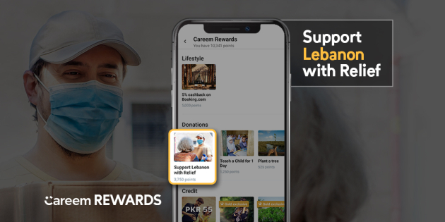Step 2: In Careem Rewards, scroll down to ‘Donations’ and Choose ‘Support Lebanon with Relief’
