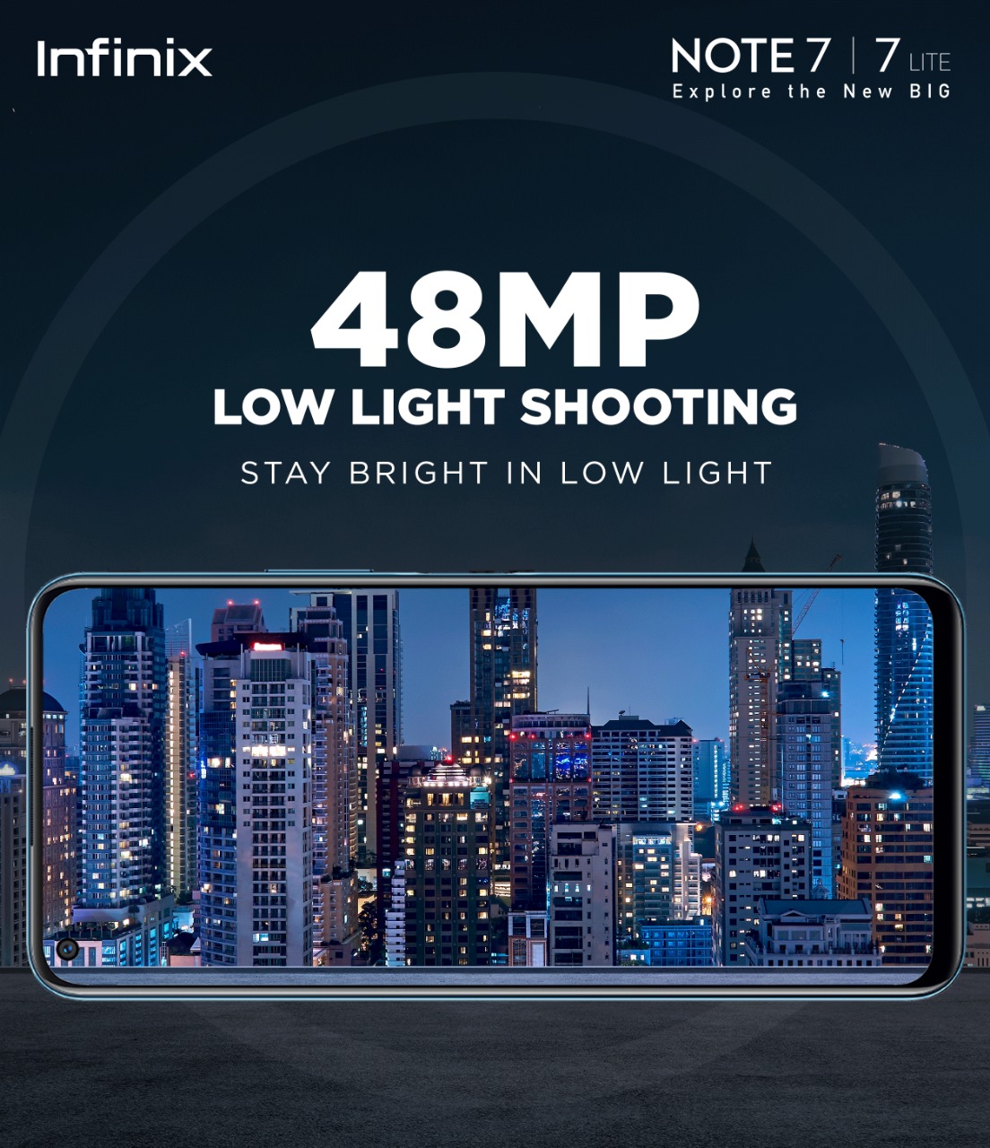 Note 7 boasts with 48MP Quad Camera, allowing users to create ultra-high-resolution photos & videosunder a diverse range of lighting conditions, specifically in low light. No matter whether it is a beautiful sunset, a backlight street view, a selfie or even highlights from a night out, the camera is able to capture it all– with crystal clear clarity and lifelike beauty.