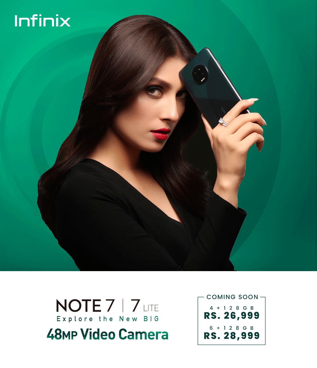 Infinix, a premium online-driven smartphone brand designed for the young generation, collaborated with sensational duo Ayeza Khan and Danish Taimoor to launch much-anticipated Note 7 series. The Infinix Note 7 comes with 48MP Quad Rear Video Camera, capable of shooting high detailed picture and videos even in low light, MediaTek Helio G70 chipset &a 6.95” HD+ Infinity-O display.The Note 7 series consists of three variants i.e. 6GB+128GB (Rs.28, 999), 4GB+128GB (Rs.26,999) and two lite variants with 4GB+128GB (Rs.24,999) and 4GB+64GB (Rs. 21,999). Infinix Note 7 will be available for pre-booking on XPark starting from 04thMayin 3 mesmerizing color designs such as, Forest Green, Aether Black and Bolivia Blue with subtle patterns in the reflective glass.