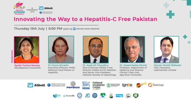 Ferozsons Laboratories Limited and Teamup are organizing the first-of-its kind hackathon on Hepatitis C eradication, in partnership with Abbott, Pepsico, Nestle, Corporate Coalition for Viral Hepatitis Elimination, SensusDx and other valuable partners. The hackathon aims to bring innovators, health hackers, entrepreneurs, and medical experts onto a common platform to find solutions that can curb the spread of the disease in Pakistan. As part of the hackathon, an insightful panel discussion is being held on the 15th of July at 5 pm UTC+5 to discuss how innovative solutions for the prevention, detection and management of HCV can help eradicate this disease from Pakistan.