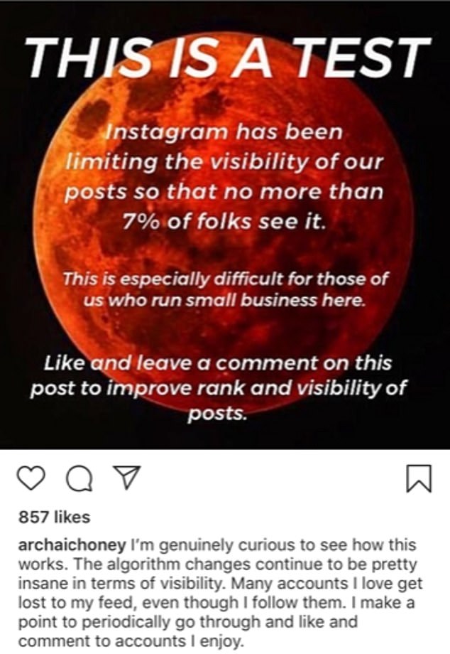 These posts have been circulating on the photo-messaging application for quite some time now and they typically start the message with ‘This is a test’. They further read, “Instagram has been limiting our posts. So, no more than 7 percent of our followers see them. Sad but true- if you see this post, please simply like it and comment “YES.”