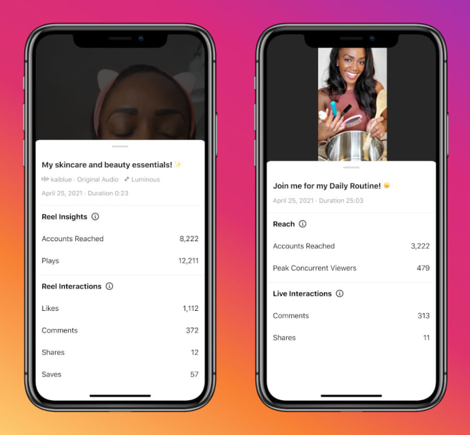 Instagram is now adding some additional features for business and creator accounts that allow users to access various metrics called insights. This basically tells creators and businesses how well their live videos and reels are doing.