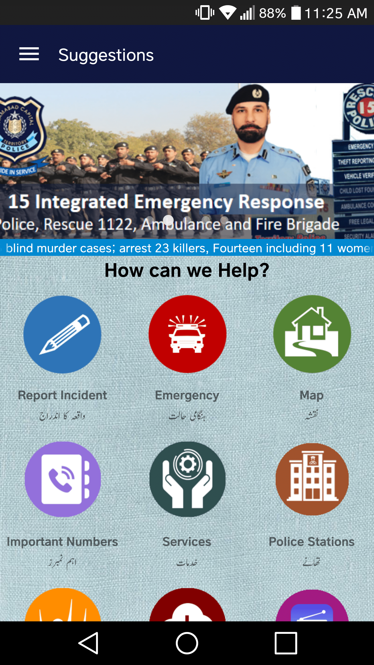 The app has various useful features, users can report incidents (harassment, assault, accidents etc.) and can send a picture, video/audio of the incident directly to the police using the app. The app also provides the users with the phone numbers of important institutions of the police. Users will be also notified of the reports and announcements by the police stations. The app also features a ‘panic button’ which allows the user to alert their predefined contacts in case of an emergency or contact Islamabad Police helpline in case of an emergency.