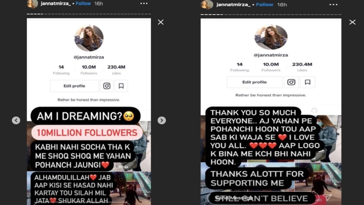 Jannat Mirza becomes first Pakistani TikToker to hit 10 million followers