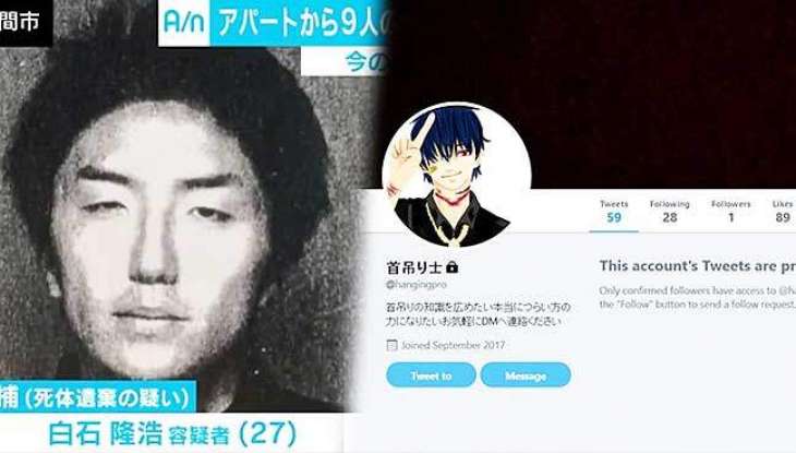 Shiraishi used his Twitter account to contact individuals posting statuses about taking their own lives, telling them that he could help them accomplish their plans, or even take his own life alongside them.