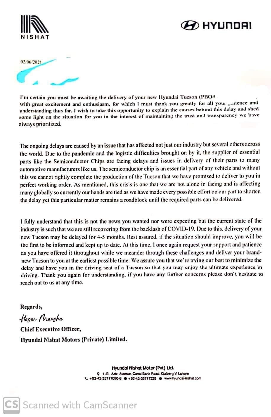 To address the public outcry, Chief Executive Officer (CEO) of Hyundai Nishat, Hasan Mansha, said last week that the failure to deliver vehicles is due to the logistic and operational challenges as well as the shortage of microchips.