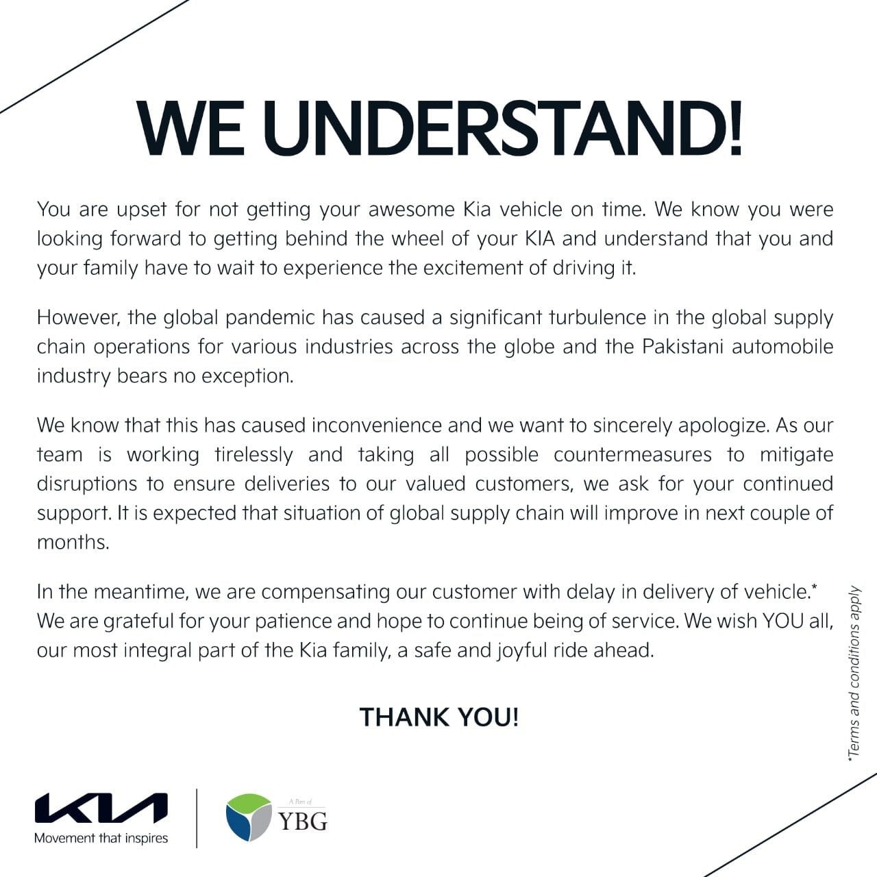 Kia Motors also issued a similar statement, apologizing to its customers for the delay in deliveries caused by the disruption in the global supply chain. While the company expected the situation to improve in the next couple of months, it promised to compensate the customers for the late delivery without going into specification. In its social media post, the company said the delay could be up to four to five months.