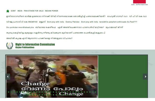 KPK RTI Commission ensures transparency and access to information. The hacked website displayed Indian flag and a message in the Hindi language. Only some parts of it could be translated, which stated,