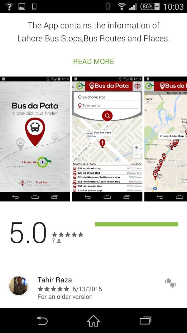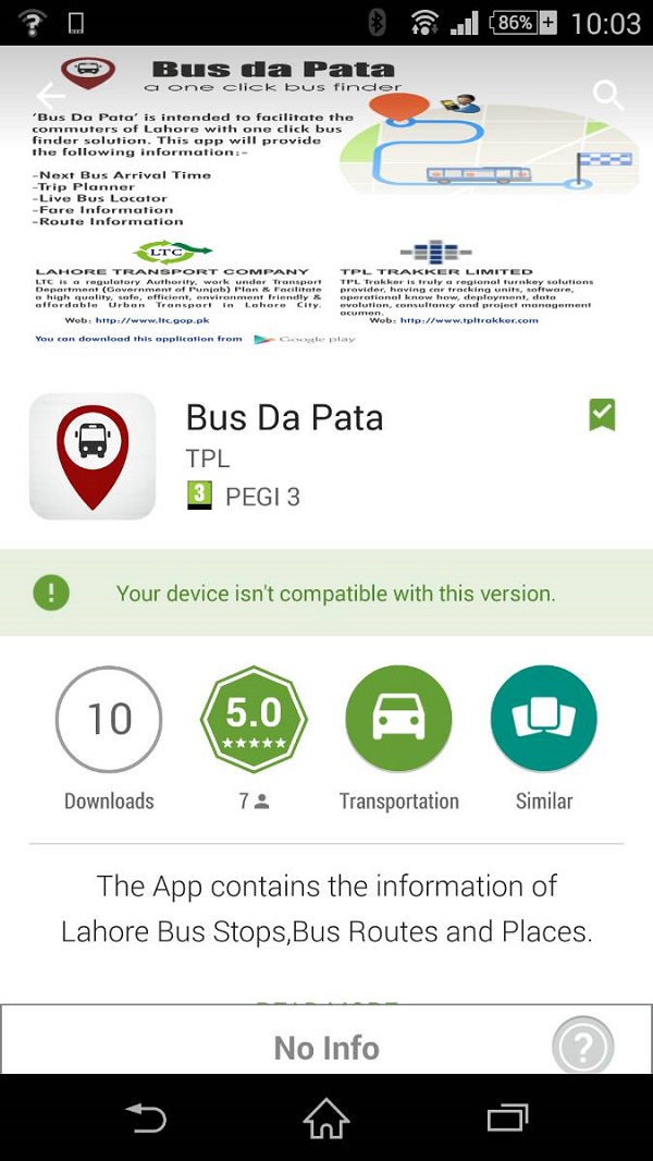 Transportation applications can be time savers for people commuting on a daily basis. Lahore transportation company (LTC) launched a smartphone application named “Bus Da Pata” which is expected to debut publicly on the 16th of June 2015. It will be offering the following services: